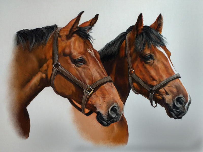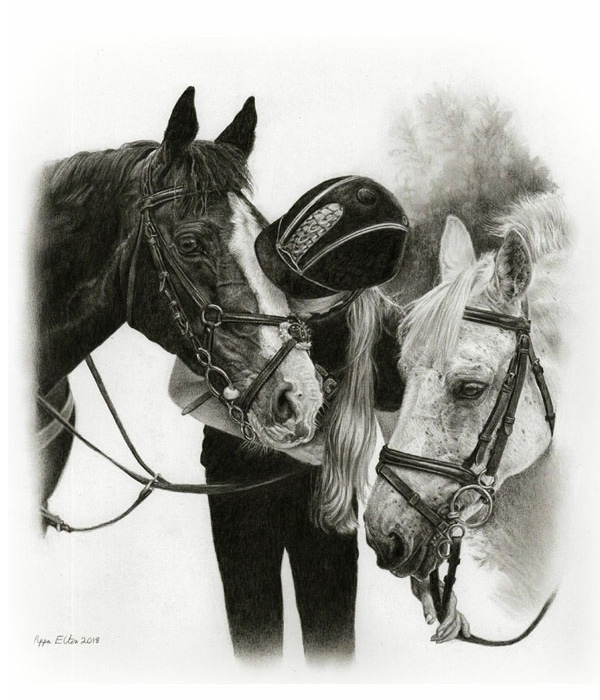 With over 35 years of experience as a portrait artist, Pippa Elton specialises in creating lifelike and elegant equestrian artwork that reflects the deep connection between horse and owner. This gallery showcases examples of her work in graphite pencil, pastel, coloured pencil, and oil, highlighting a range of mediums and compositions.